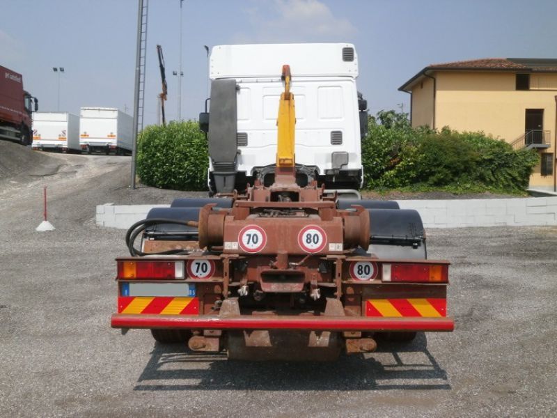 - DOTAZIONI: Abs - Intarder - Climatizzatore - Webasto - Frigorifero in cabina - Edc - Bloccaggio differenziale - Tempomat - Cruise control - Visiera parasole - Radio - Serbatoio Lt. 600 - Vetri elettrici - Specchi retrovisori riscaldati - Gancio traino - Asr - Impianto idraulico per rimorchio - 3° asse idraulico - Km. 560.000